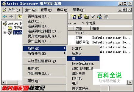 在Active Directory中可以将具有相同属性的用户放入同一个组中,这样可以大大提高管理用户的效率。例如当需要对某个组中的用户赋予同一种权限时,只需将该权限赋予该组即可,而无需分别为每个用户赋予权限。创建和管理组的步骤如下所述: