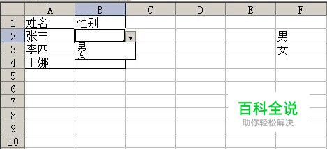 现在点B4单元格并点右边的小黑三角就出现下图效果,点“女”就可以输入了,B3 B2单元格也是一样可以选取的,是不是很方便呢,如果可以请在下面大大的好评哦,如果有地方不清楚的请提意见,我再改进!