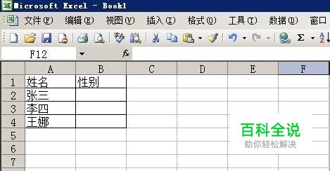 用鼠标在F2处按住拖到F3出现下图在“男 女”的地方出现蚂蚁线