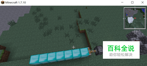 接下来在整个T台前面放一块圆石为了方便,我们成为圆石A。