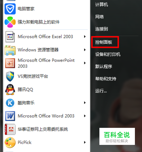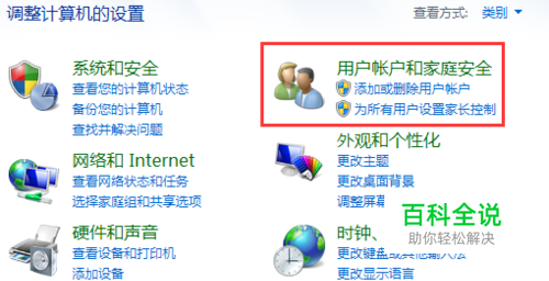 选择“控制面版”中的“用户帐户和家庭安全”;
