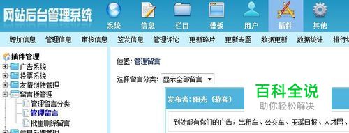 到这步,前台发布的留言就不会立即显示了,而是需要从后台审核,那么如何审核呢,切换到:插件->留言板管理->管理留言