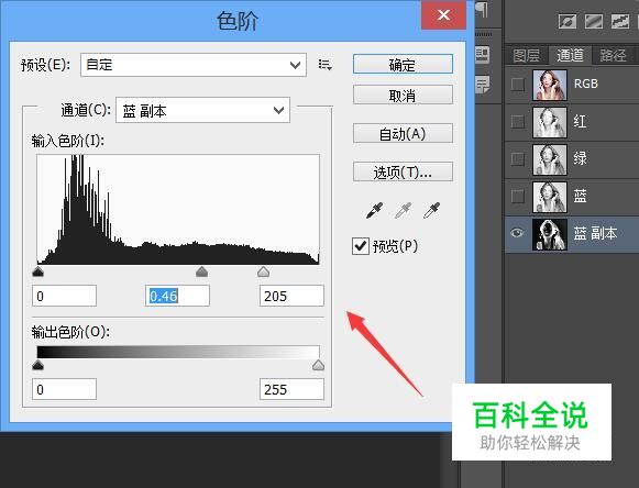 使用ps打开我们的图片,然后在通道里选择蓝色通道然后将其复制,并按下Ctrl+I键,其效果如图所示: