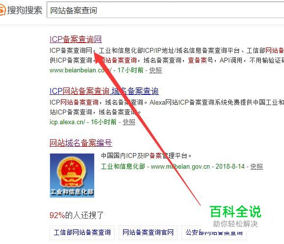 进入之后,搜索“网站备案查询”,点击并进入,如图所示。