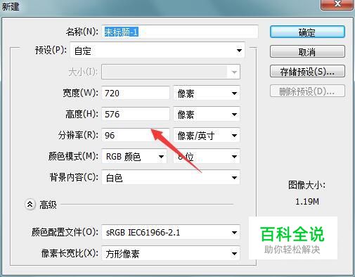 打开ps之后按下Ctrl+N键在弹出的对话框内设置参数如图所示: