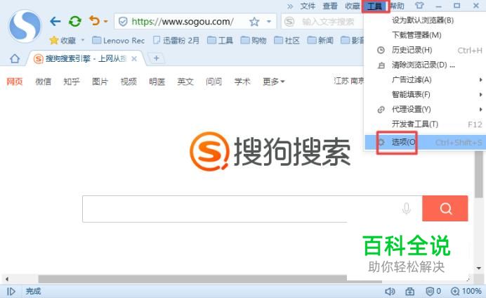 首先,我们打开我们电脑上面的浏览器,然后我们点击工具,弹出的界面,我们点击选项;