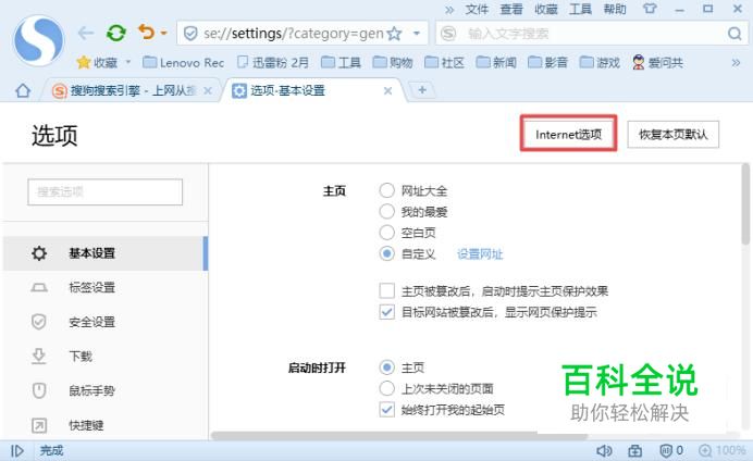 弹出的界面,我们点击Internet选项;