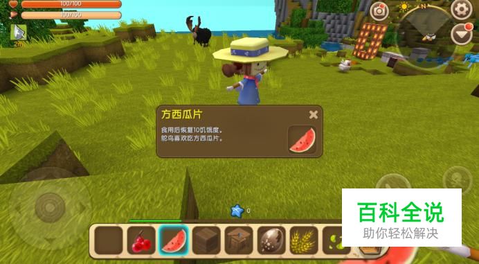 我们可以到野外寻找一些野生西瓜,打掉野生西瓜就可以获得方西瓜片。