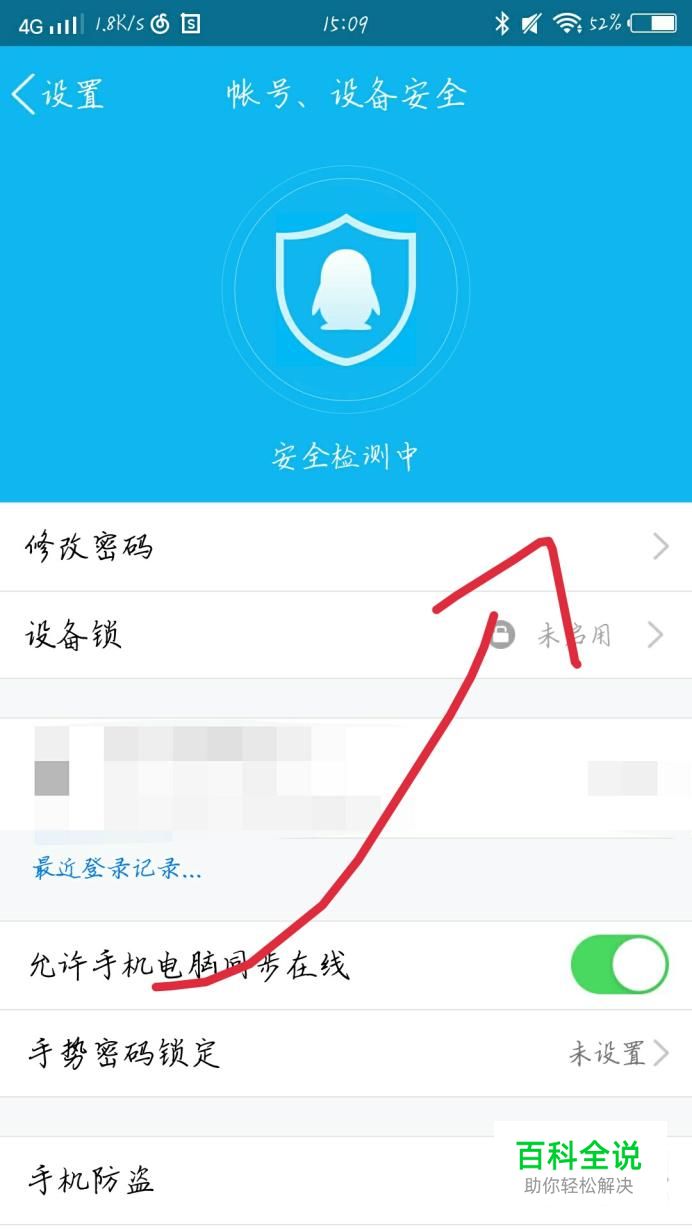 点击“账号设备安全选项”如图1箭头所示。会出现一个新的界面点击“修改密码”选项,如图2箭头所示。这样你就可以修改密码了。