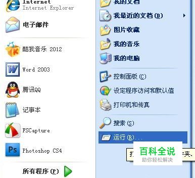 我们首先点开开始菜单,选运行。