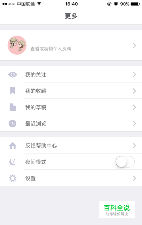进入“更多”界面。在第一栏就可以看到自己的个人信息和头像。 点击第一栏,也就是自己的头像。