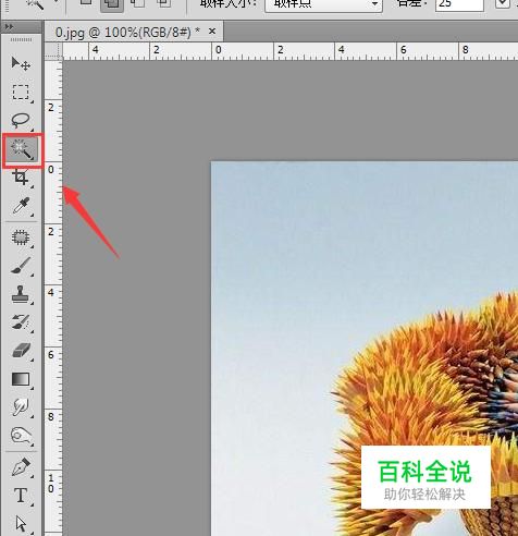 使用ps将我们的图片打开,然后在工具箱内找到魔术棒工具,如图所示: