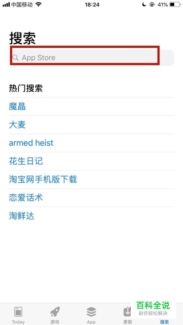 首先在我们的手机桌面上找到苹果商店并点击它,如下图所示。