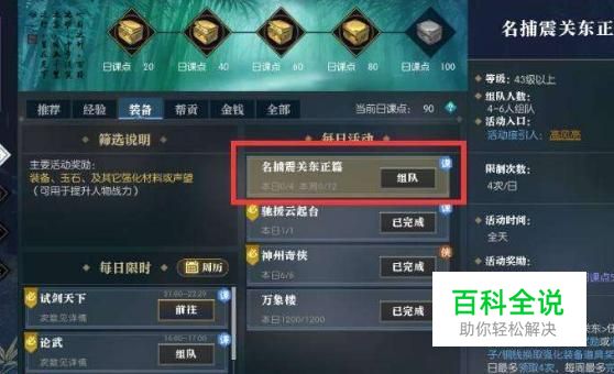 进入逆水寒游戏后,点击键盘上的J,调出任务界面,选择一个需要组队的任务。