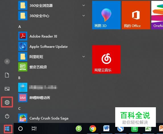首先,我们打开我们的电脑,然后我们点击开始,弹出的界面,我们点击设置;
