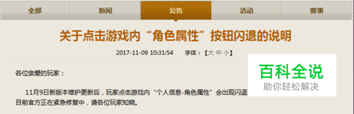 首先如果是下图公告日期出现的点击角色属性秒退我们可以直接等待官网更新即可,因为官方已经承认这项功能出现了BUG导致秒退,我们等待官网更新即可。