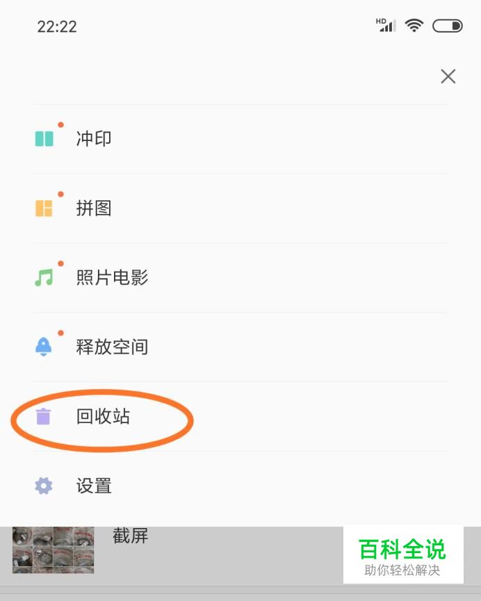 找到相册选项中的回收站选项,照片删除后都被保留在这里一段时间