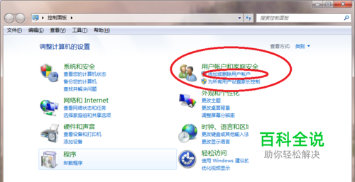 打开【控制面板】,找到【用户账户和家庭安全】下的【添加或删除用户账户】
