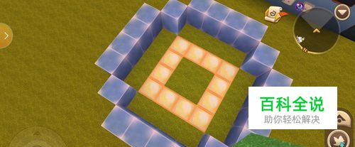 然后用荧光石块在冰块中间围一个空心正方形。