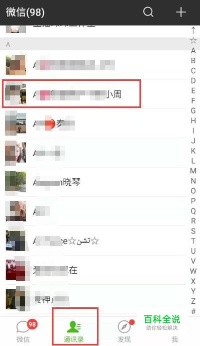 打开手机微信,点击“通讯录”,找到你要删除的那个人,点击头像打开。