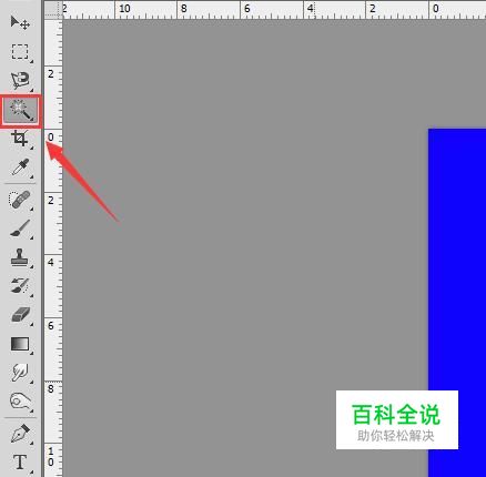 首先使用ps将我们需要编辑的图片打开,然后在工具箱内找到魔术棒工具,如图所示: