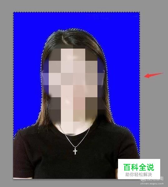 选择魔术棒工具在人物的背景上点击鼠标左键就得到了背景的选区,如图所示:
