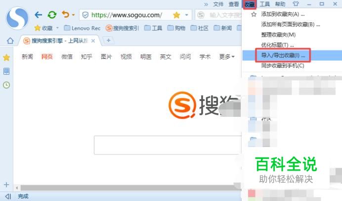 首先,我们打开我们电脑上面的浏览器,然后我们点击收藏,弹出的界面,我们点击导入/导出收藏;