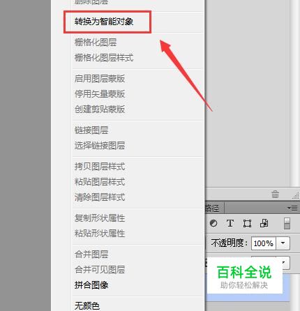打开图片之后我们在图层选择图片单击鼠标右键,在右键菜单那里找到转换为智能对象选项,如图所示: