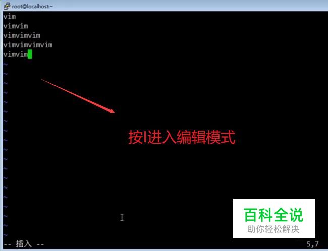 首先我们进入vim以后要按I键进入编辑模式,如下图所示