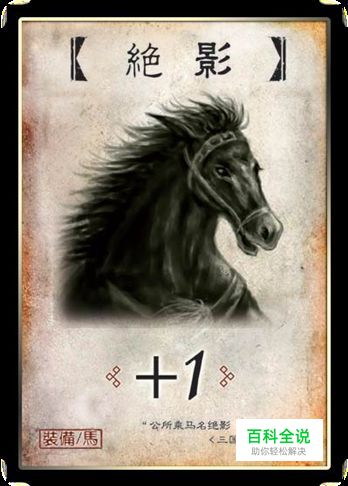 +1马。主公、内奸可早早装上,增加防御力。忠臣如果不是在主公身边的位置,也可早早装上;如果在主公身边,可暂缓装备,以便主公有顺手牵羊,可以牵你的牌。反贼一般不装,珍贵的武器可大家轮流用嘛,你砍完主公了,下家如果砍不到但有顺手牵羊的话,也可以牵过来继续砍,早日革命成功。