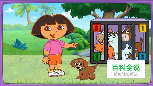 可爱的小朵拉带着她的宠物狗狗出去散步,在途中她们发现了四只狗狗被困在了一个大鸟笼中。于是朵拉派出她的宠物狗狗去寻找鸟笼的钥匙,救出被困的小狗。