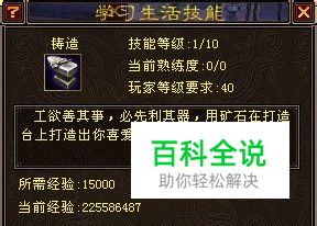使用铸造技能 点击画面左下方的技能按钮(alt+s),打开技能界面,选择“生活”技能,如下图所示 选中铸造,点击制作(此操作必须在打造台旁边才能进行,例如洛阳的213,159)。 小贴士:打造台在三大城市中的铸造技能传授人附近可以找到! 选中配方后,点击”制造”即可