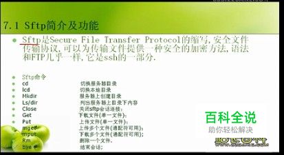 实际操作中的命令是什么,在视频中都有介绍了,用户可以根据视频中的命令,更好的使用Sftp命令。