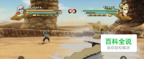 本作隐藏BOSS首当其冲……是首先出场。我们可以看到兜的血量已经低于要求线了,查克拉条相比手鞠多出了一块奇怪的东西(这难道就是男人比女人多出来的那个……跑题了)。那么看下图。