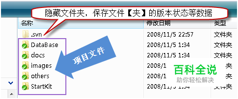 在上图中URL of Repository:下的文本框中输入svn server中的代码库的地址,其他默认,点击OK按钮,就开始签出源代码了。 说明:上图中的Checkout Depth,有4个选项,分别是迁出全部、只签出下一级子目录和文件、只签出文件、只签出空项目,默认的是第一项。上面的例子中,我们也可以使用web的方式访问代码库,在浏览器中输入 http://zt.net.henu.edu.cn/svn/StartKit/ 这时候也会弹出对话框,要求输入用户名和密码,通过验证后即可浏览代码库中的内容。 搞定!源代码已经成功签出到刚才新建的StartKit目录中。 打开StartKit目录,可以看到如下图的文件夹结构: