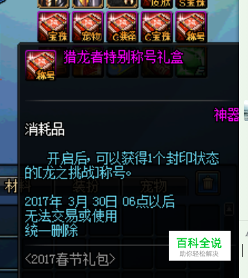 通过商城购买“2017苍龙啸天礼包399“,其中里面有199礼包是没有龙之挑战称号的,即可获得称号
