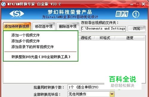 导入你的电影批量转换MP4格式 MP4/RM转换专家不仅支持导入和导出MP4格式,还支持导入AVI,MKV,FLV,WMV,MPG等几乎所有的视频格式。当然,点击“DVD全能转换工具”按钮,还可以将DVD光盘转换成MP4格式。软件采用先进的转换引擎,根据CPU的核心数进行批量同时转换多个视频,充分利用电脑机器的性能,转换速度也是我用过最快的。
