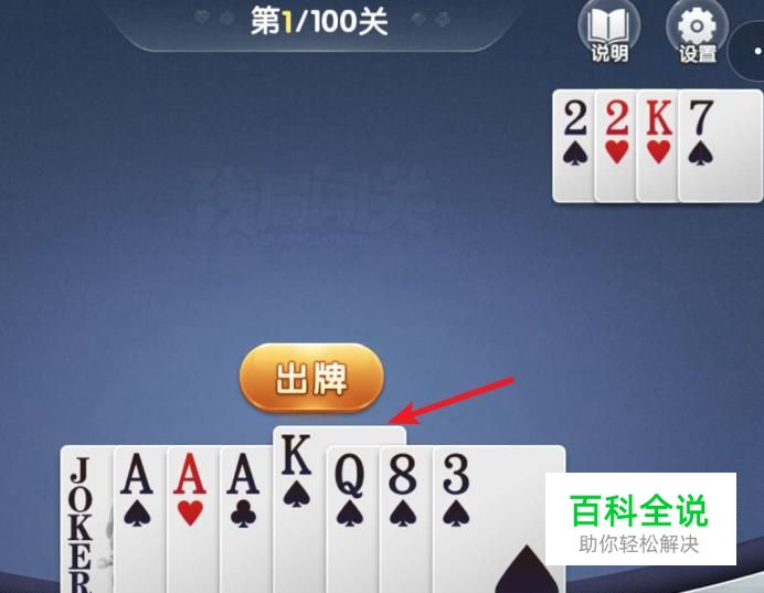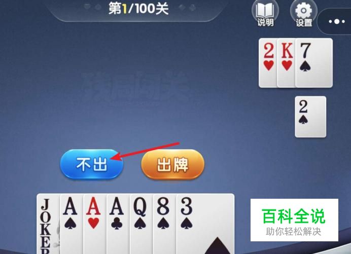 对手要不起,我们就只剩一张Q了,出完就过关了。