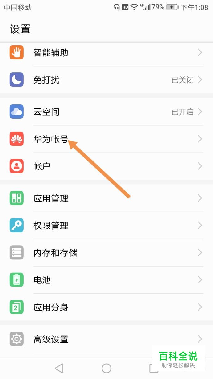 打开华为账号后,往下拉,点击账号,如下图。