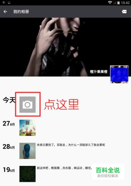 打开微信,点右下角的“我”,接着点左上方的“相册”,点“今天”,准备发朋友圈 。