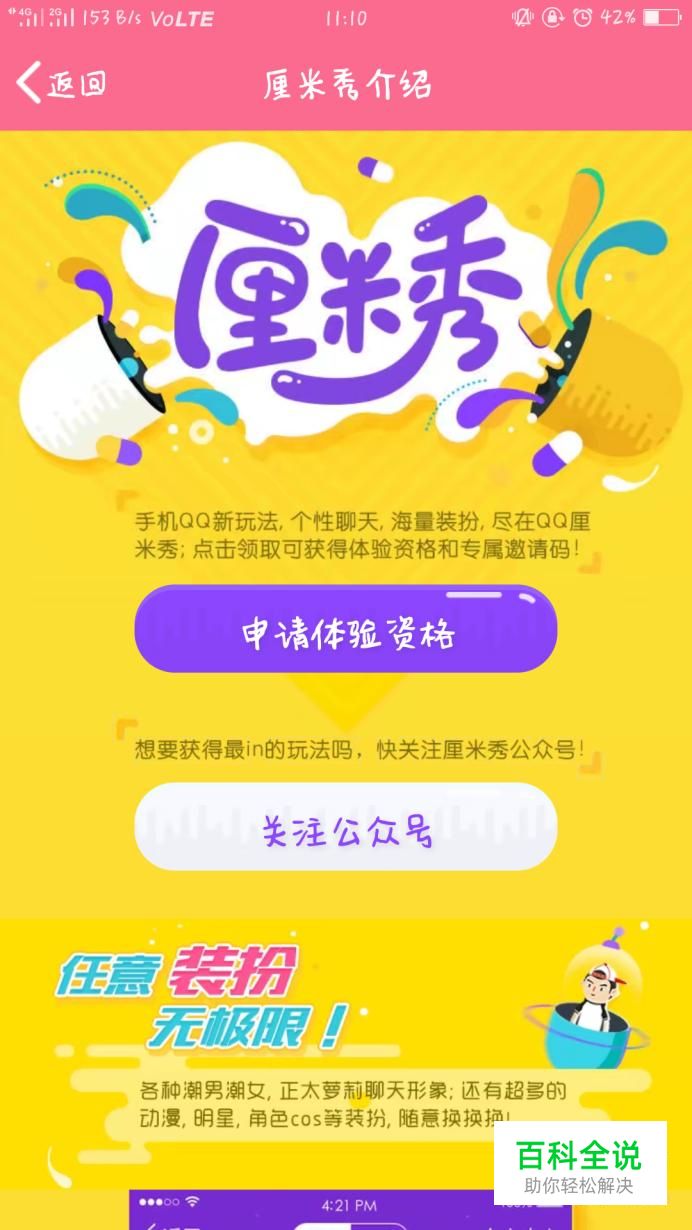 点进厘米秀之后,再点击申请体验资格,就可以开通厘米秀了。