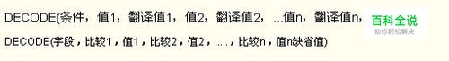 该函数的含义如下: IF 条件=值1 THEN RETURN(翻译值1) ELSIF 条件=值2 THEN RETURN(翻译值2) ...... ELSIF 条件=值n THEN RETURN(翻译值n) ELSE RETURN(缺省值) END IF