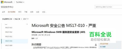 方法一:更新微软补丁MS17-010 目前微软已发布补丁MS17-010修复了“永恒之蓝”攻击的系统漏洞,如果是使用Windows 7/8/10等操作系统的用户,可以根据各自操作系统安装补丁,