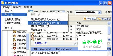备份聊天记录的另一种方法是导出为备份文件,这种文件只能被导入到QQ“信息管理器”中才能被查看,操作步骤如下所述。