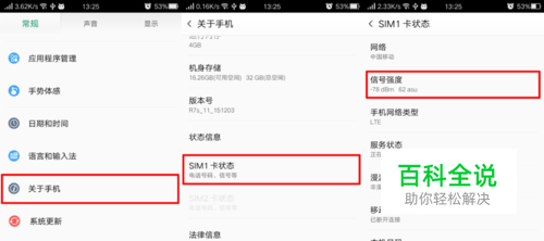 当满足以上三个条件后,进入设置--关于手机--SIM卡状态,查看信号强度的数值。比较两手机的数值差异,绝对值相差10dBm内为正常。当然,不同机型、不同品牌,是会有信号强度差异的。如果觉得手机信号不正常,可直接送往服务中心检测。