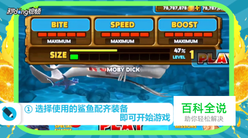 进入游戏后选择使用的鲨鱼,配齐装备即可开始游戏。
