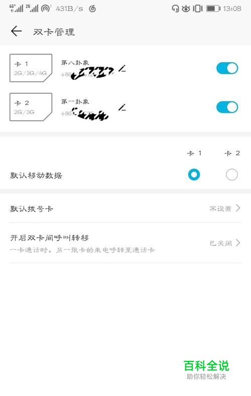 方法二:查看手机设置 打开手机设置,找到“无线与网络(不同手机名称可能不同)”,再打开双卡管理 如果在双卡管理里面支持切换卡一还是卡二使用4G流量(当前是“移动卡+联通卡”或“移动卡+电信卡”),说明是全网通手机;否则是定制机