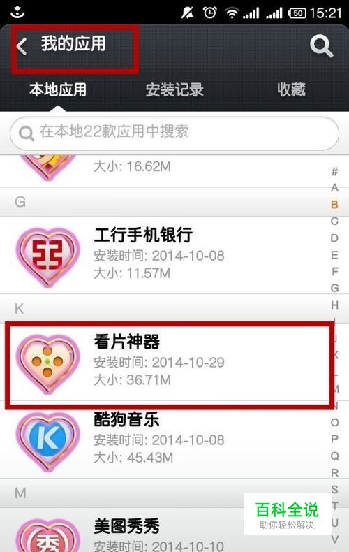 小编现在常用的“看片神器”,接下来就以它为例来介绍。首先在手机应用里面下载并安装“看片神器”,下图是小编已安装好后在手机应用里查看的