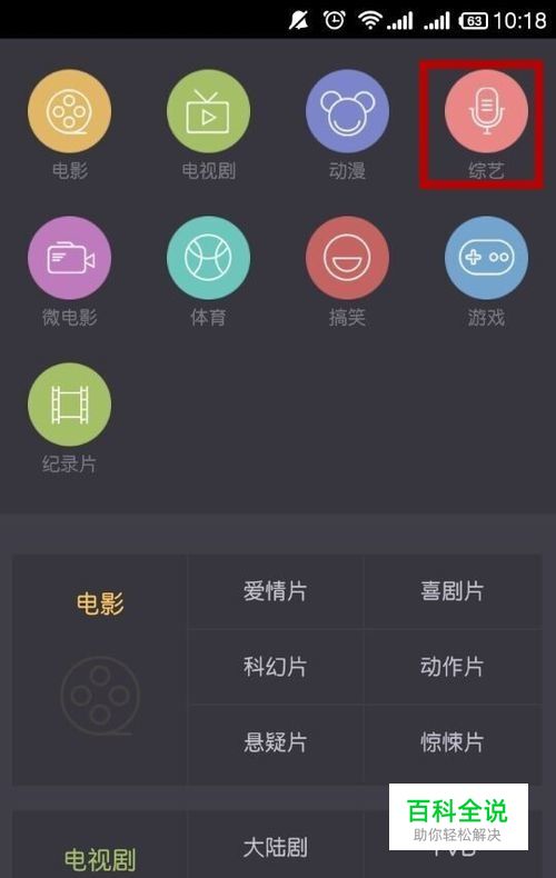 下载并安装好后,打开“看片神器”,点击“频道”,(频道是软件将视频都分门别类好了,电影、电视剧、综艺等),小编下面以选综艺为例来介绍,选择上方的“综艺”