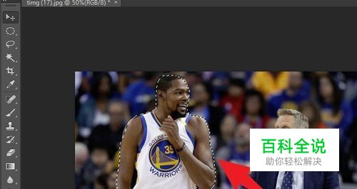 使用钢笔工具勾绘出人物区域,然后复制该图层。